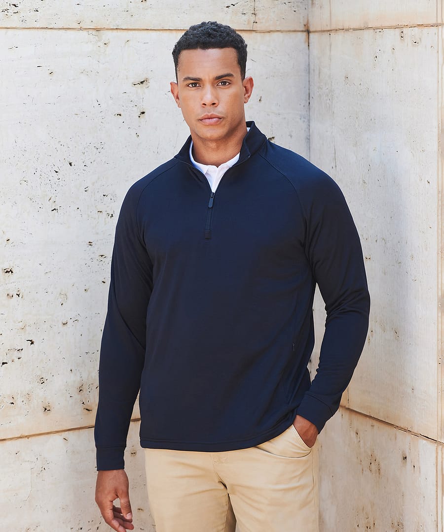 This on-trend adults quarter-zip with wicking finish is a great option for a sporting environment. The wicking finish will ensure you stay fresh for maximum performance.
