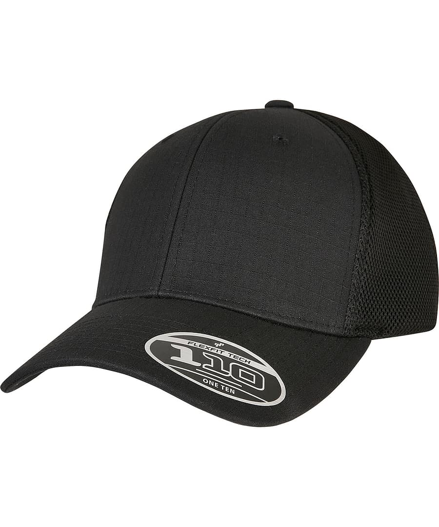 This Flexfit cap has a dense, ripstop material on the two front panels and a curved visor with decorative seams. The back is made from transparent mesh, and the snapback closure makes individual size adjustment easy. Made from cotton, spandex and polyester mesh in one size.