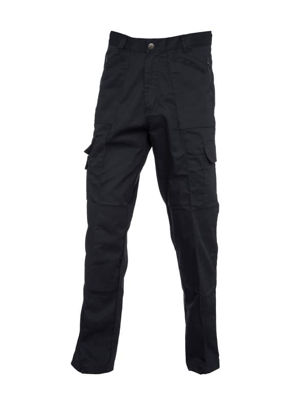 The Uneek Action Trouser makes a great pair of workwear trousers and is also excellent value for your money. It features a range of utility pockets that include four slanted front pockets, two zipped side pockets, two thigh pockets, two rear pockets and a mobile phone pocket. A knee pad pocket with bottom opening allows easy placement of knee pads. The trousers fasten with a concealed metal rivet button at the waist. The trousers also feature wide belt loops, with reinforced twin belt loops at the front for added strength. The Uneek action trousers are smart, flexible and perfect for workwear.