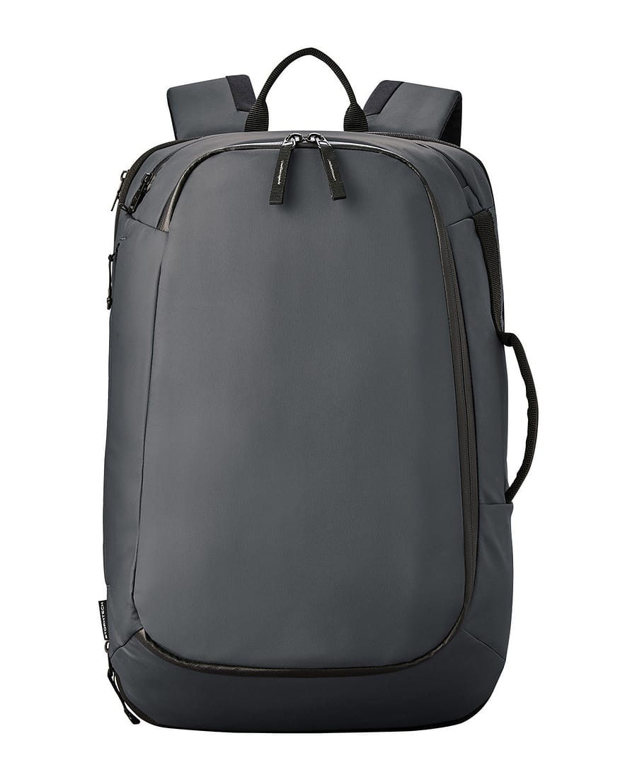 Waterproof fabric polyester taffeta lining with Polygiene® freshness technology. Large main opening with two-way waterproof zip. Large accessories pocket with secure zip closure. Expands to 35 litres. RFID blocking pocket, padded. Ergonomic and stowable adjustable shoulder straps with rolled edge for comfort. TSA carry-on size. Adjustable sternum strap. Easy-access laptop and tablet compartment. Ultra-soft padded air mesh back panel. Rolling luggage compatible. Reinforced top and side carry handles. Zipped water bottle pocket. Internal zipped mesh pocket. Internal key clip. Fits up to 16 laptop. Decoration access. Dimensions: 19″ (H) x 12″ (W) x 6″ (D), expanded 19″ (H) x 12″ (W) x 9″ (D). Volume: 25 litres/1,525 cubic inches, expanded 35 litres/2,136 cubic inches.