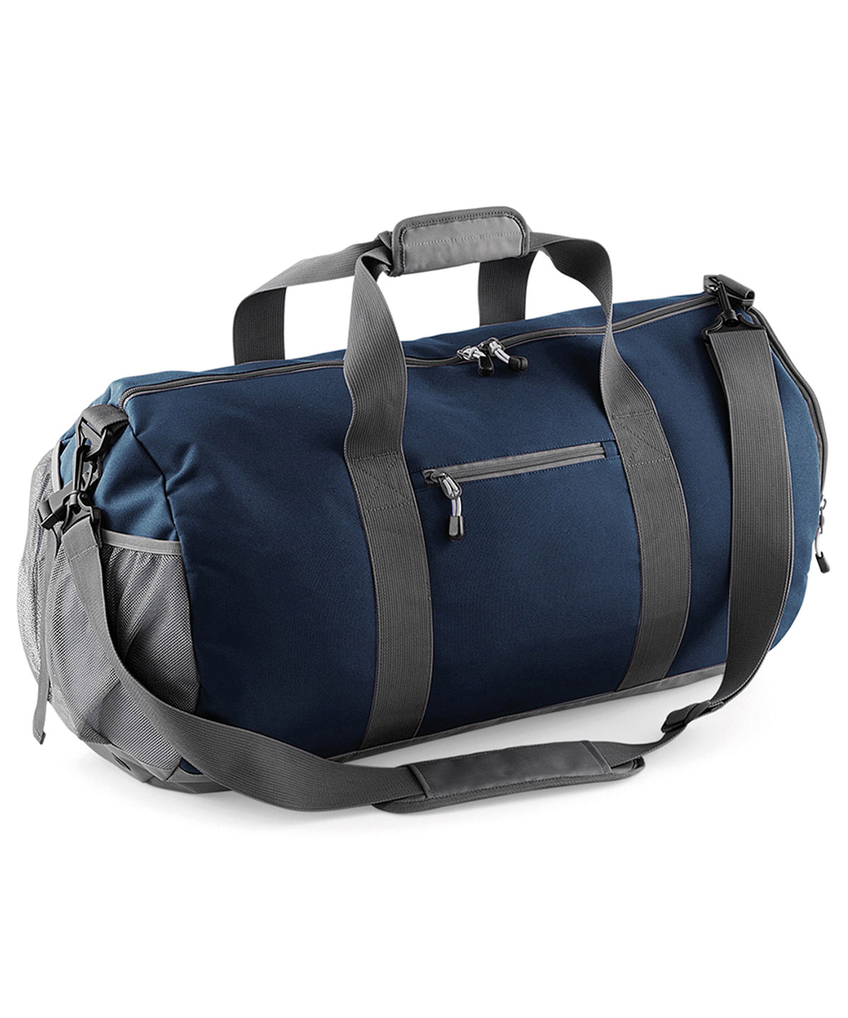 TearAway label for ease of rebranding. Water-resistant fabric. External mesh ball pocket. Shoe tunnel/ wet pocket. Metal ventilation eyelets. Zippered front valuables pocket. Zippered end pocket. Detachable adjustable shoulder strap with pad. Haul handle. Padded hand grip. Reach certified.