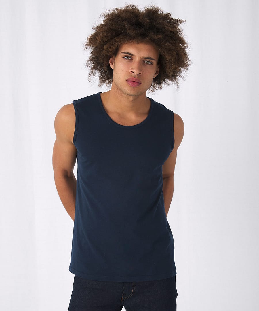 Add a relaxed note with this deep round neck tank top. The B&C Athletic Move is made of 100% ringspun cotton and features armholes with self-fabric piping. This sleeveless design is sporty, light, and comfortable.