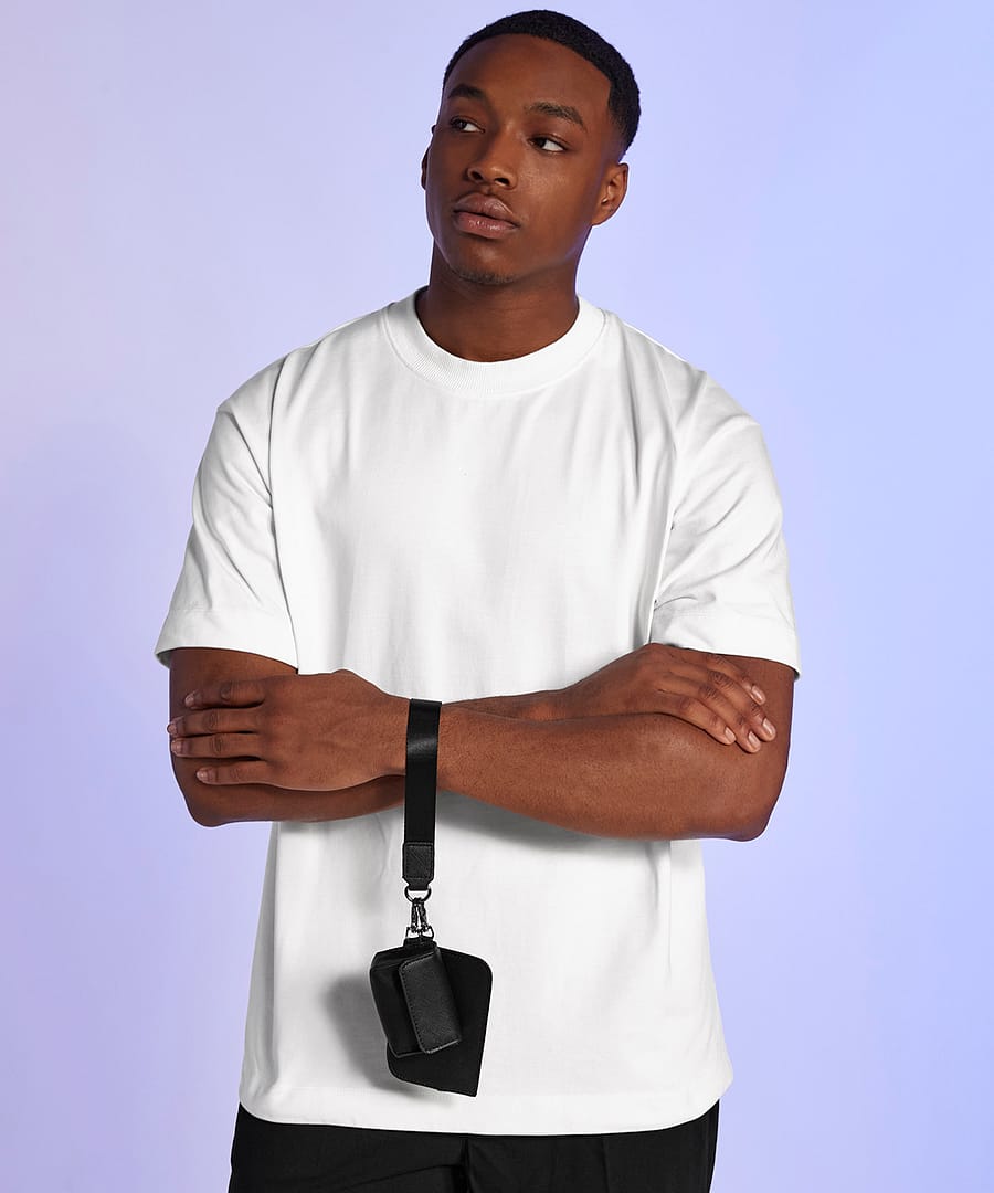 Saffiano fine grain. Three-piece product. Air pod case with a press-stud opening. Webbing wristlet strap. Zipped card wallet. High-shine gold metal trims. Compatible with bags and accessories from the Boutique Collection. TearAway label for ease of rebranding.