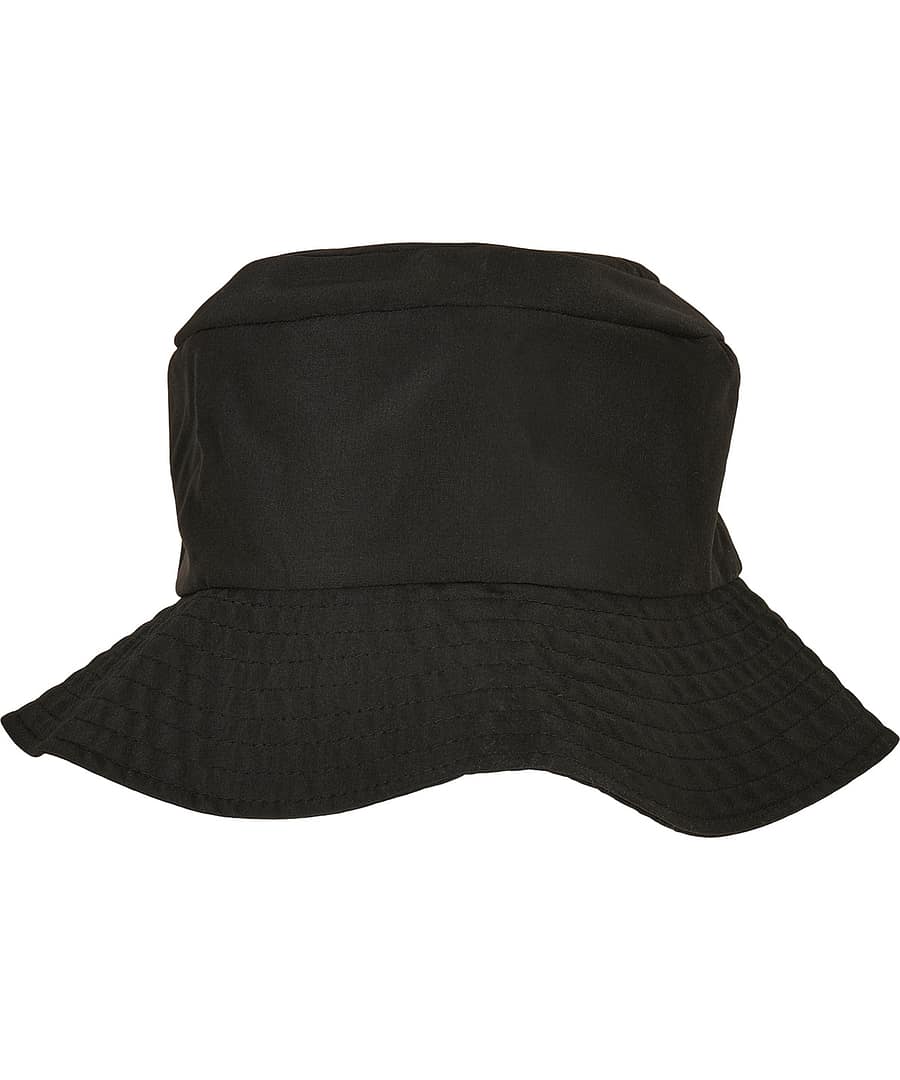 The reversible bucket hat offers two sides for being joyful. One side is designed in a two-tone batik pattern, the other side in plain black. Naturally, the bucket hat features a flat brim with decorative seams and bordered eyelets. It is made of sturdy polyester and is a one size fits all.