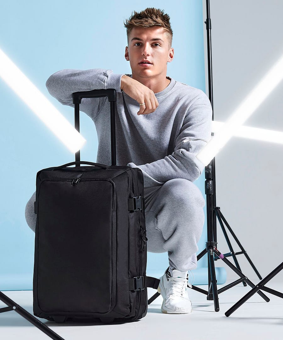 TearAway label for ease of rebranding. Convenient dual compartment design for easy packing. Lockable main compartment zip. Large zippered front compartment with internal mesh divider. Zippered internal pocket. Dual compression straps. Padded top and side handles. High stability retractable twin-handle. Aircraft cabin compatible – suitable for most airlines. Durable integrated skate wheels. Can be further customised with BG485 Escape handle wrap. Padded laptop compartment, compatible up to 15.6″.