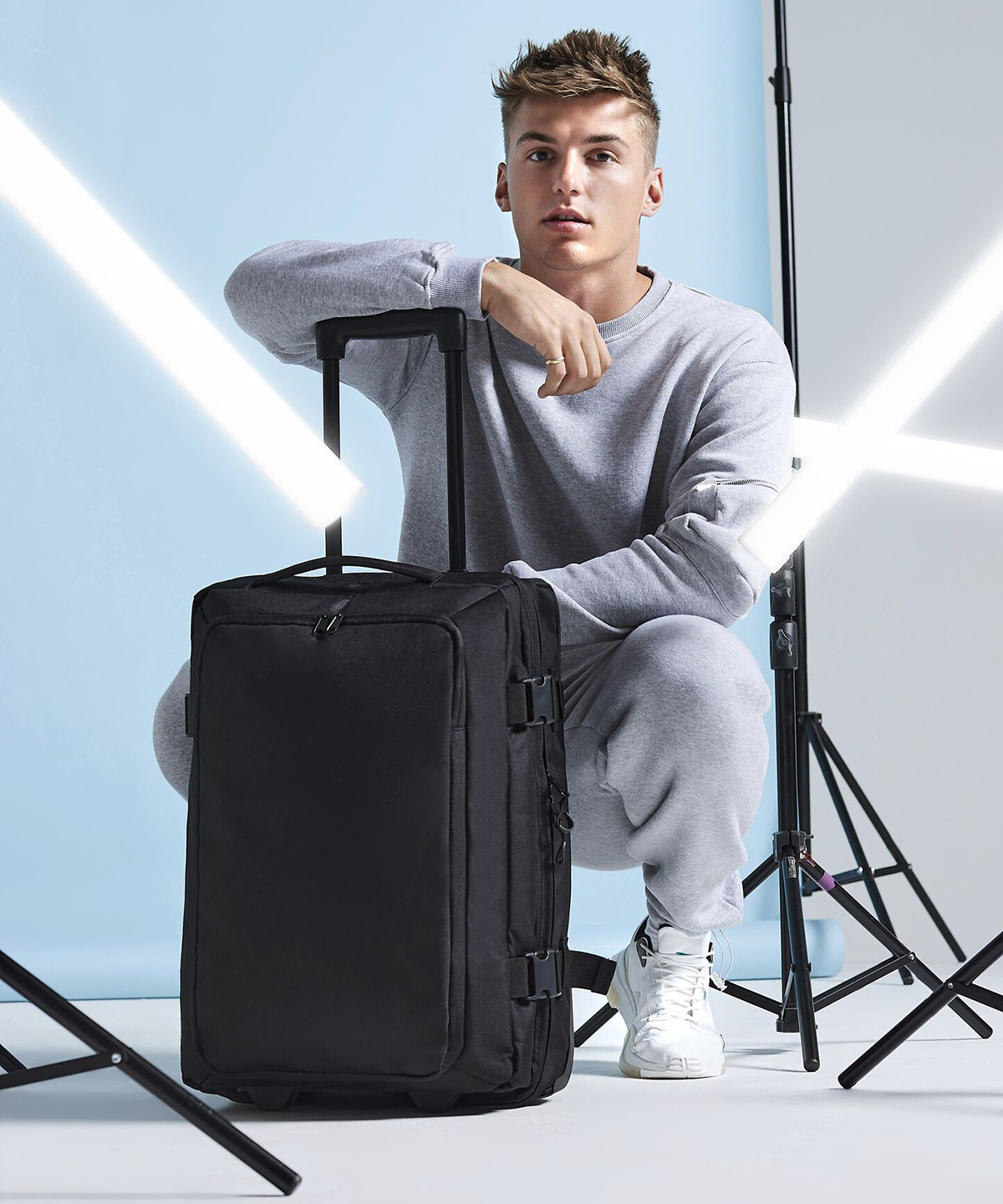TearAway label for ease of rebranding. Convenient dual compartment design for easy packing. Lockable main compartment zip. Large zippered front compartment with internal mesh divider. Zippered internal pocket. Dual compression straps. Padded top and side handles. High stability retractable twin-handle. Aircraft cabin compatible – suitable for most airlines. Durable integrated skate wheels. Can be further customised with BG485 Escape handle wrap. Padded laptop compartment, compatible up to 15.6′.