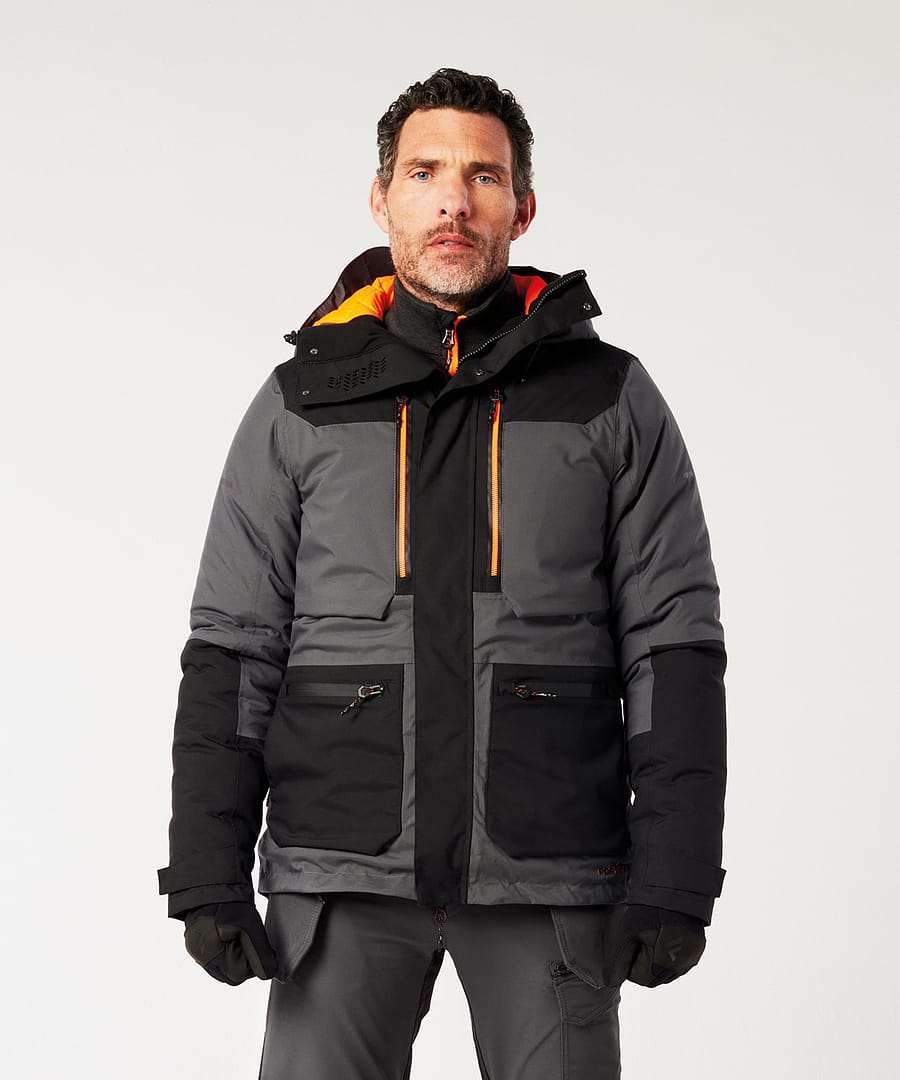 Waterproof with taped seams, preventing water penetration. Extremely water-resistant, PFAS-free Texpel Splash Eco fabric finish water beads away from fabric surface. Sherpa-lined inner side panels for maximum warmth. Laser-cut holes offer added ventilation. Contemporary design with an ergonomic cut. Vertical and horizontal hood adjustment for customisable fit. Inner soft Insulatex lining offering warmth and comfort. Flotech system for ventilation and added breathability. Chunky baffle inner for enhanced comfort. Helmet-compatible adjustable hood. Engineered with an active fit. Reflective print for increased visibility and safety. Hook-and-loop cuffs for a secure fit. Waterproof zips prevent water penetration. Print access for corporate branding.