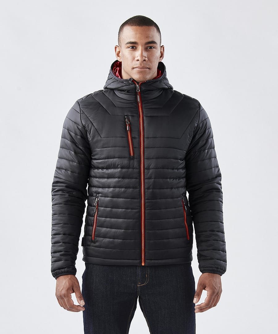 STORMTECH D/W/R durable water-resistant outer shell. Quilted body with ultra soft liner. Centre front vislon zipper with contrast zipper teeth. Elasticized cuffs. Attached hood. Adjustable hem. Set-in sleeves. Brushed tricot hand warmer pockets. Zippered pockets with garages. Chin saver. Internal full-length storm flap. Inside pocket. Internal media port. Embroidery access.