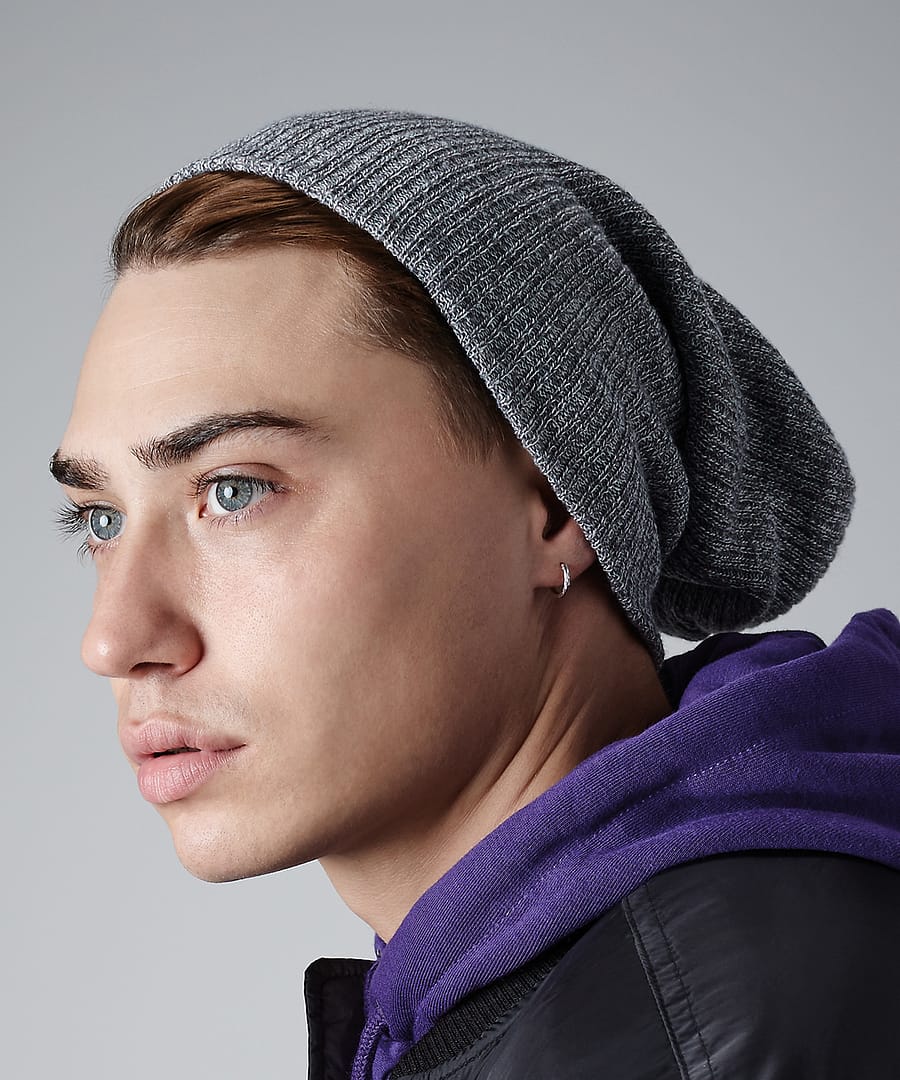 A relaxed approach to your winter headwear collection, the heavy gauge slouch beanie is created using a soft-touch fabric for the urban style enthusiast. With a double layer, subtle ribbed knit design, the slouch beanie can easily be rebranded to create a standout fashion statement.