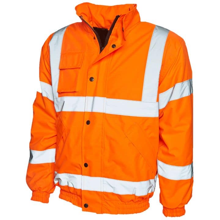 A hi-vis bomber jacket, this conforms to safety norms that approve it as a high visibility garment. Made from 300 Denier polyester PU coated fabric, this Uneek bomber jacket is perfect for outdoor jobs. The jacket is padded and lined and features waterproof taped seams and hood with draw cord for protection in case the weather outside turns bad. It offers useful pockets and embroidery access at the hem. The jacket is machine washable up to 25 times.