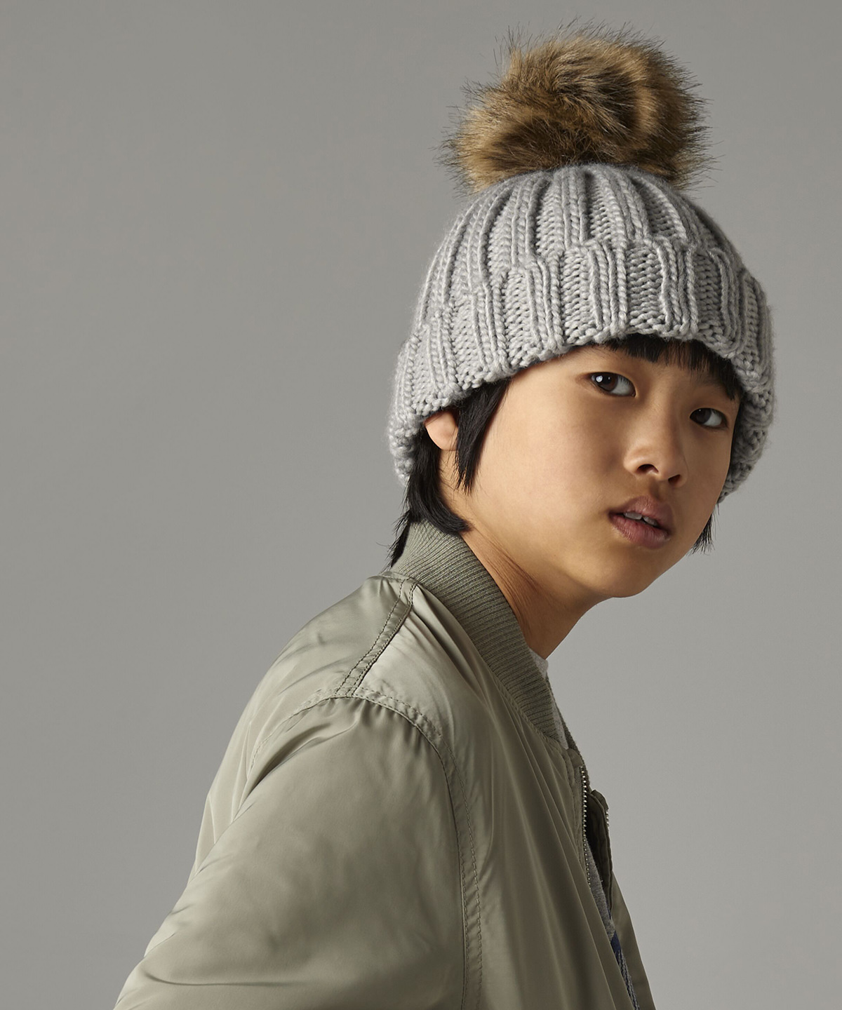 Tear-out label for ease of rebranding. Sumptuous heavy ribbed knit. Luxury faux fur pom pom. Non-removable pom pom for added safety. Cuffed design for optimal decoration. Unisex styling. Available in adult sizes. BSCI certified. Reach certified.