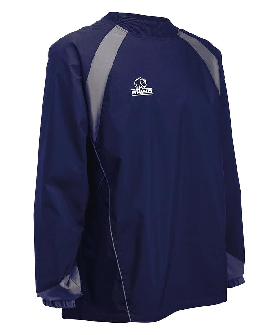 Performance training top. Wind and water-resistant. Ribbed collar for comfort. Relaxed fitting with drawcord at hem.