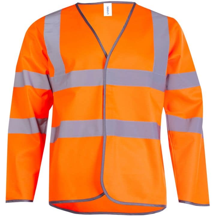This Uneek Long Sleeve Safety Vest is a high visibility conforming garment, designed for wearer safety and visibility. The vest is ideal for industries where high visibility is a must to ensure that the workers are safe when working in that particular environment. Also, the vest is perfect for outdoor works. The orange hi-vis vest is railway standard compatible and suitable for use at railway sites. With long sleeves, the vest offers greater coverage. The polyester vest is washable up to 25 times.