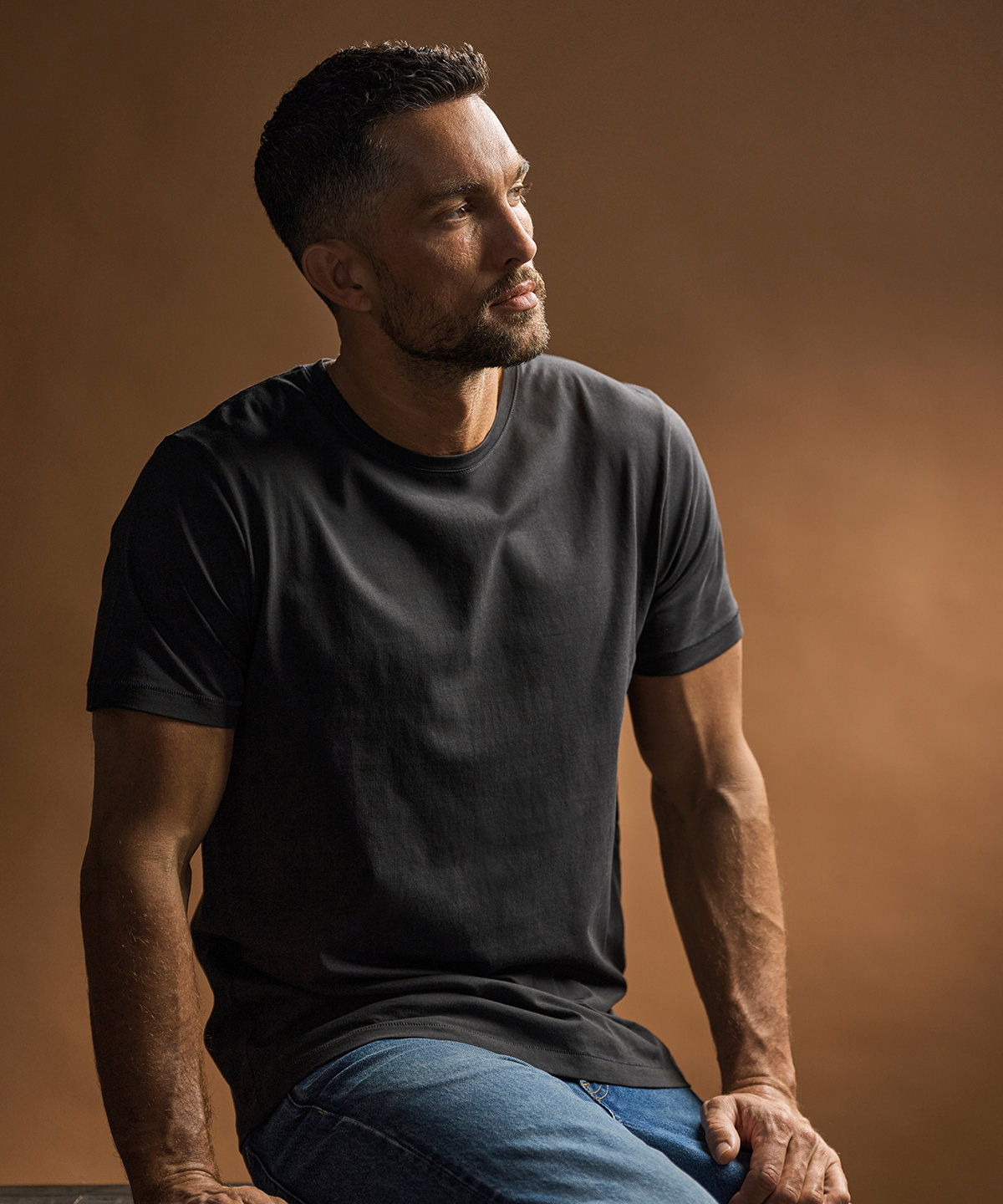 Tailored fit. Shoulder-to-shoulder neck tape. Double pre-shrunk. Double stitched. Long-fibre cotton. Enzyme-washed. Silicone treatment. Certified organic cotton.