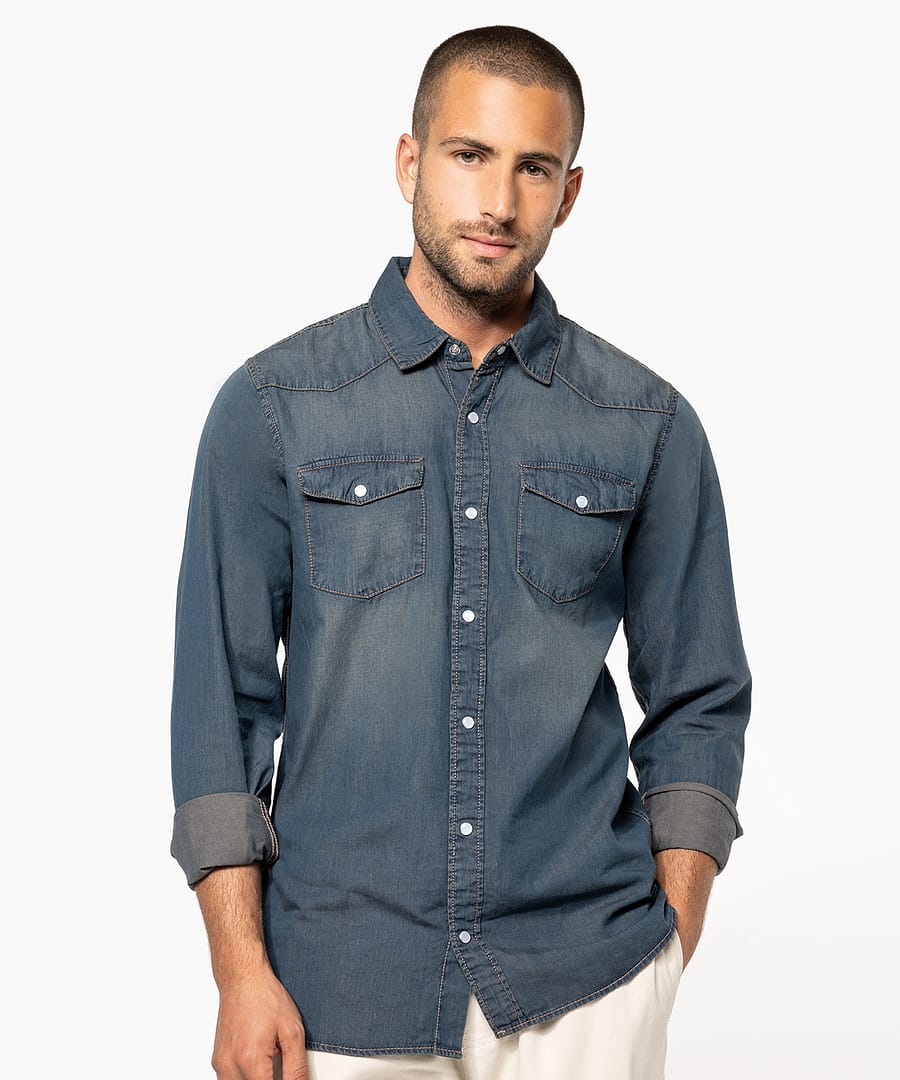 100% cotton. Enzyme-washed shirt. Fitted style. Decorative stud buttons. 2 studded chest pockets with flap. Front and back yokes. Studded cuffs. This product has been specially treated and appears intentionally aged. This manufacturing process result in colour variations between products and makes each piece unique. BSCI certified. Oeko-Tex certified.