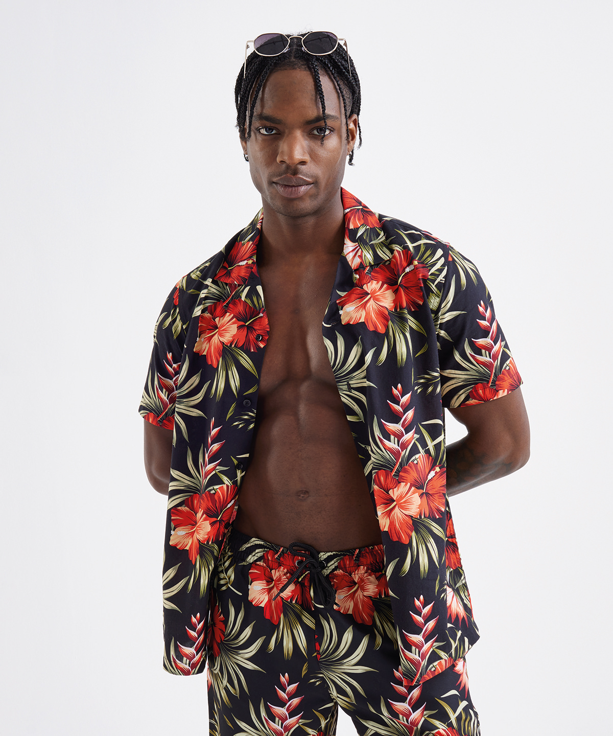 Relaxed fit shirt. Cuban collar. Button front closure. Short sleeves. Product contains no branded neck label.* Removable Kimble or looped garment tags. Inner seam label holds important product information on one label with a second label containing brand information which can be cut-away.*Please note old stock may contain a fixed branded label.