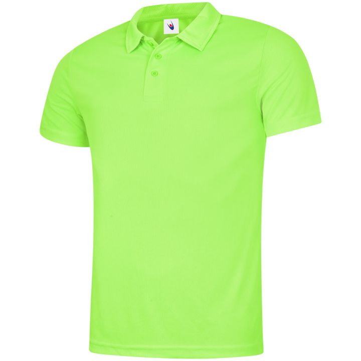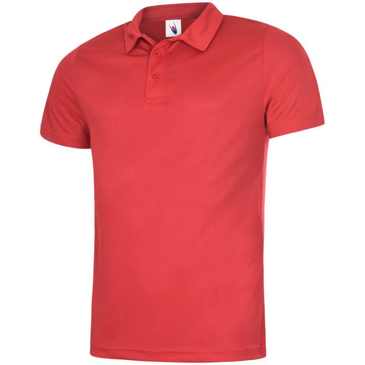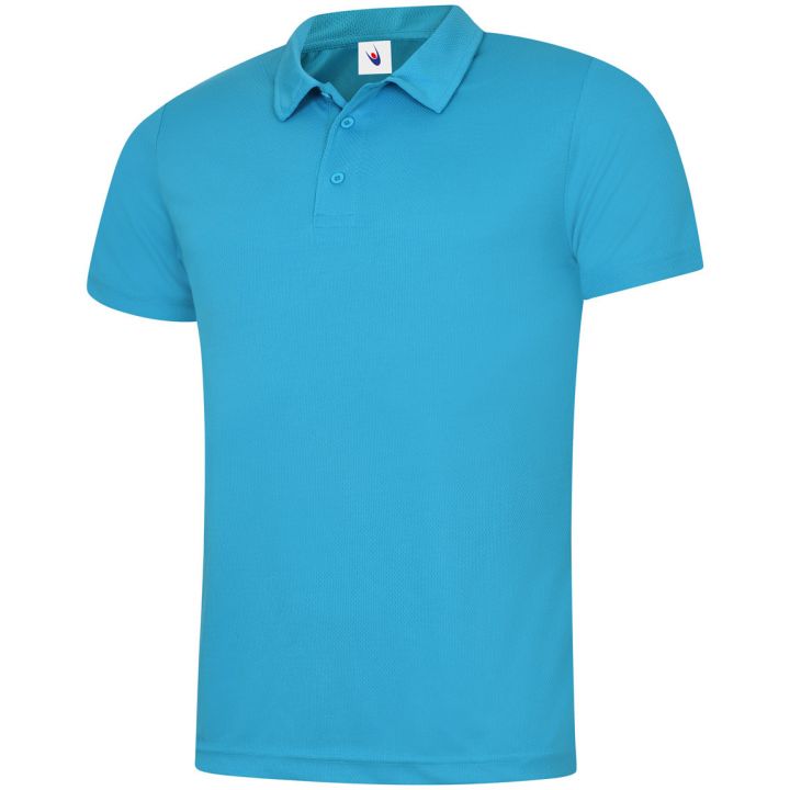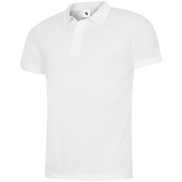 A lightweight and breathable polo shirt made from 100% polyester textured fabric with wicking properties. Features a taped neck, self-fabric collar, 3-button placket, and hemmed sleeves and bottom for a clean, polished look.