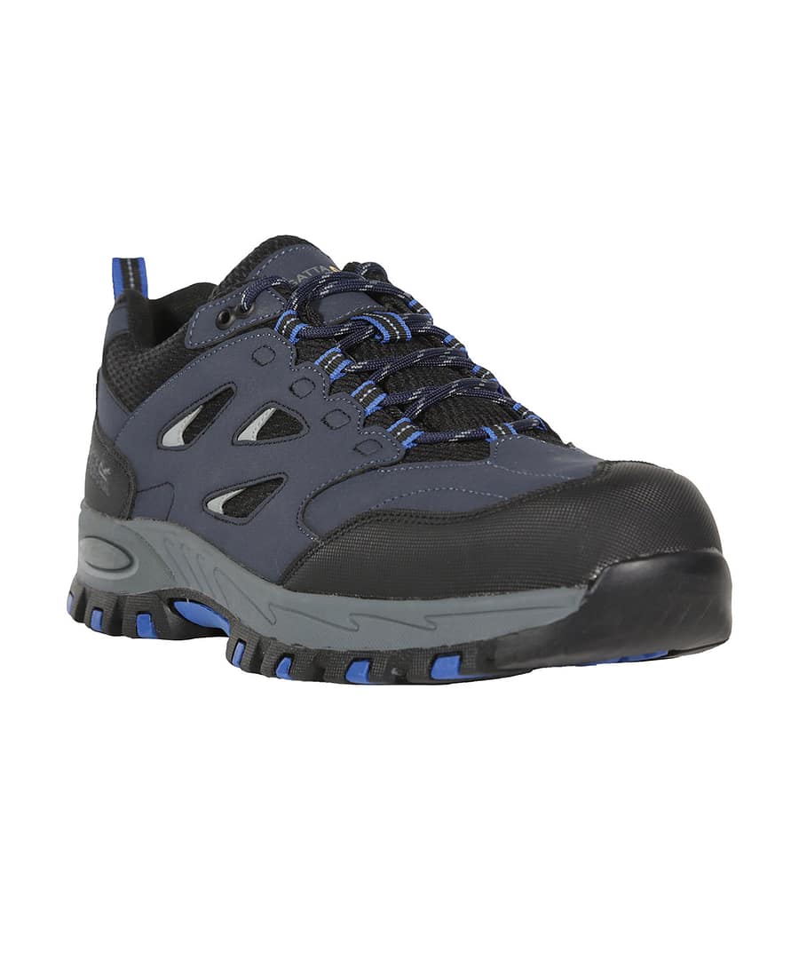 Conforms to EN20345: 2011 – SB. Water-resistant PU nubuck and mesh upper with padded ankle protection. Die-cut EVA footbed and flexible EVA midsole for underfoot comfort and support. Steel toecap with oil-resistant rubber outsole. S1P +DWR finish. .