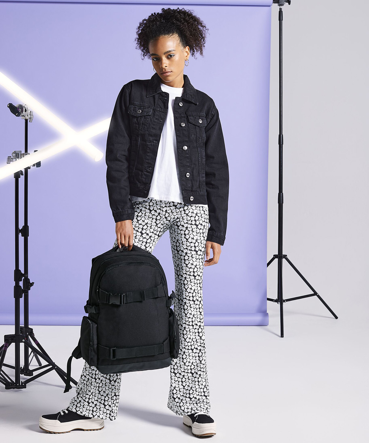 TearAway label for ease of rebranding. Laptop compatible up to 17″. External access padded laptop compartment. Skateboard carry straps. Internal organiser section. Zippered front pocket. Zippered side pockets. Padded back panel. Compression straps. Padded adjustable shoulder straps. Grab handle. Reach certified.
