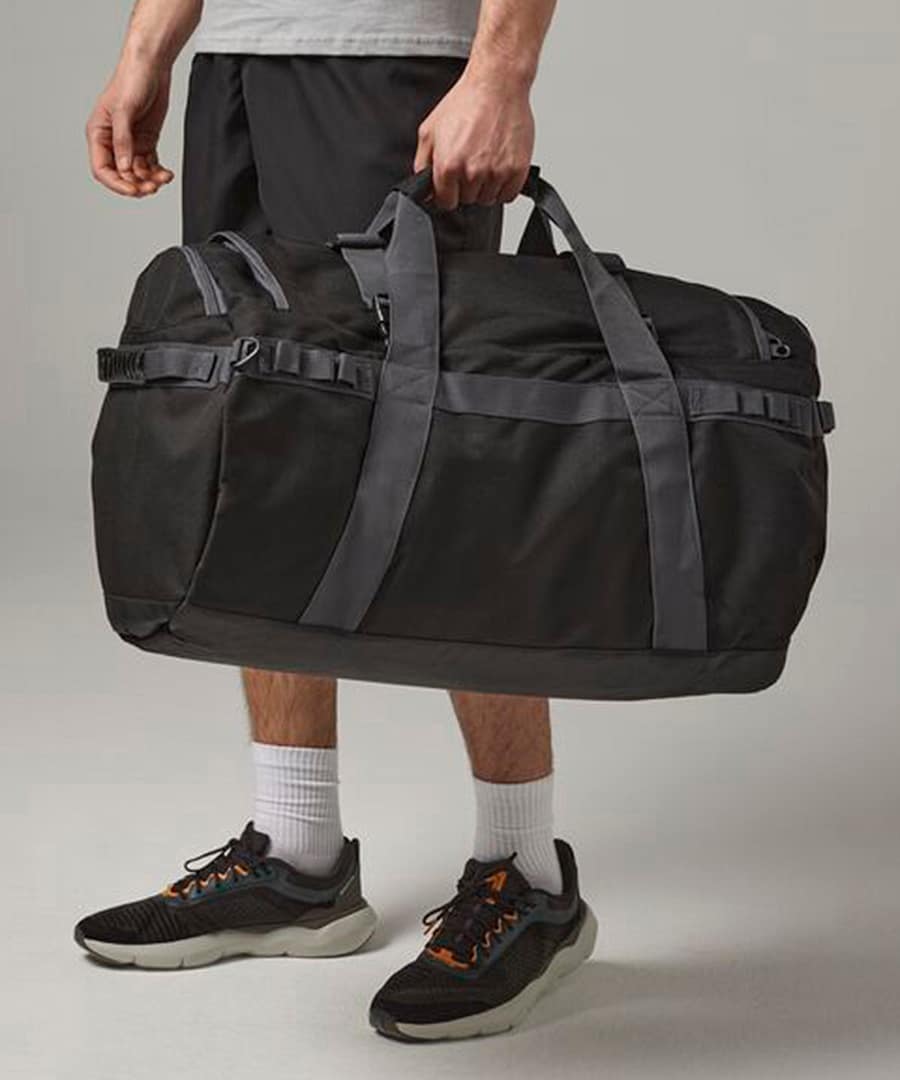 Heavy duty construction. Foldaway backpack shoulder straps. Grab handles. Compression straps. Internal mesh pockets. Locking main zip. Padded hand grip. Reach certified.