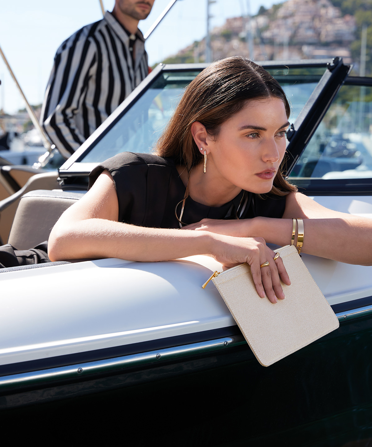 Premium twill fabric. Structured design. Zipped main compartment. Internal foam padding. Soft-touch lining. Self-fabric edge trim. High-shine gold metal trims. Multipurpose use. TearAway label for ease of rebranding. Contains recycled polyester.