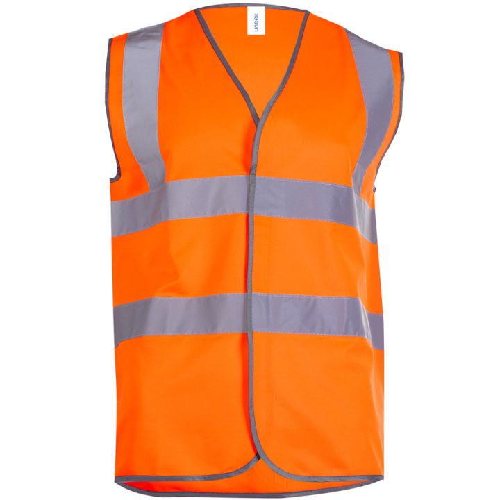 Whether it is for outdoor activity or indoor work, this Uneek Hi Viz Vest is a perfect choice. It conforms to required high visibility directives, with the orange vest also meeting railway hi-vis norms. Made from 100% polyester fabric, with black bound edges and retro reflective strips, this safety vest makes for a good option.