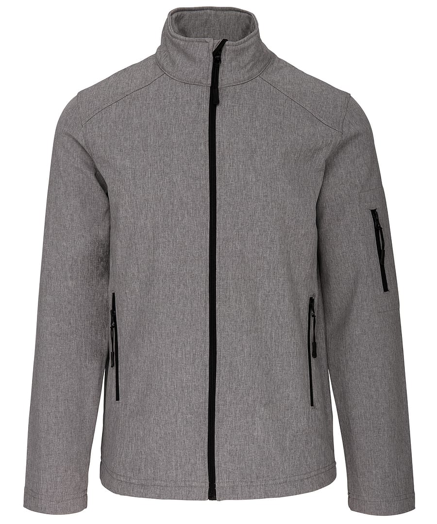 Softshell 3 layer bonded fabric. Breathable up to 3000 gsm/24h & water resistant up to 8000 mm. 95% Polyester 5% Elastane outer layer, performance membrane mid layer & micro fleece thermal inner layer. Zip through front. 2 zip closing side pockets. 1 zip closing left sleeve pocket. BSCI certified. SEDEX certified.