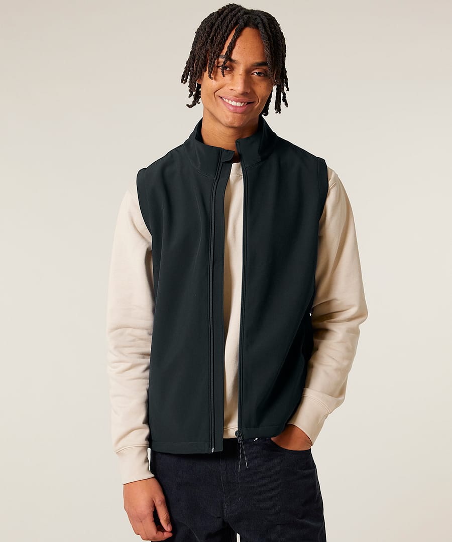 High collar. Bottom hem with adjustable plastic stopper and elastic cord. Reverse nylon zip at centre front. Zipped outside welt pockets with reflective elastic zip pull. Fully bonded inside fleece layer with anti-pilling finish. Side panels and stretch for better shape. Inside seams finished with recycled binding. Water-repellent bottom hem with adjustable plastic stopper and elastic cord. Water-repellent. Breathable and windproof.