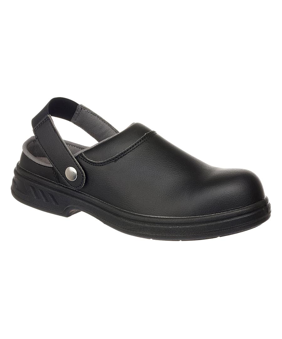 This lightweight microfibre style offers superb close fit and comfort in a clog design with a detachable back strap. Conforms to EN ISO 20345:2011 SB.