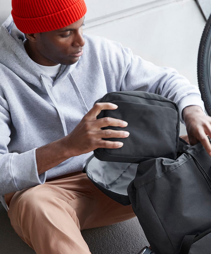 Contains 100% certified recycled polyester. Water-repellent fabric. Zipped front pocket. Internal zipped pocket. Two internal slip pockets. Internal mesh pockets. PU, self-coloured zip pulls. TearAway label for ease of rebranding.