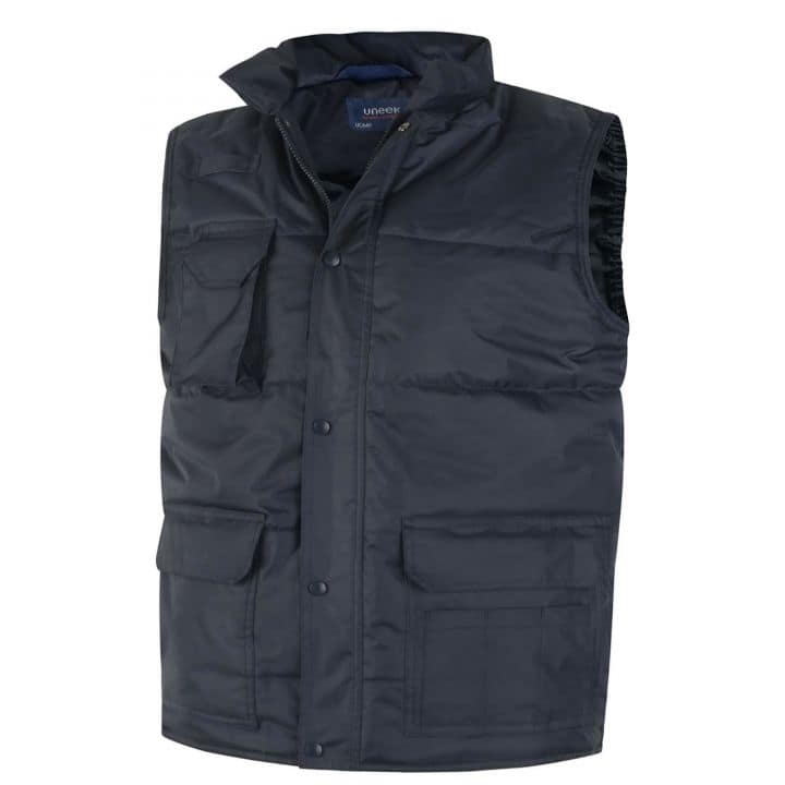 The Uneek Super Pro Bodywarmer comes with all the features required of a utility vest along with stay warm and dry properties. The polyester water repellent coated fabric keeps you dry while the insulated lining and large hand warmer pockets provide the warmth that you need. The bodywarmer offers a contemporary fit with zip front fastening and snap button storm flap. It also features convenient pockets, pen slots and a radio loop.