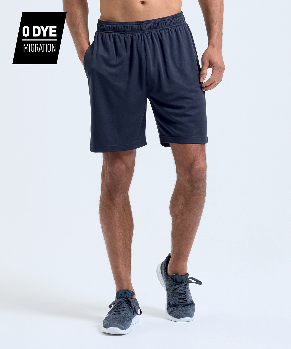 Performance shorts. Unisex fit. Cationic-dyed. Certified recycled polyester. Wicking fabric. Stretch. Lightweight. Breathable. Side pockets. Adjustable drawstring. Textured finish. Coin pocket. Inner brief.