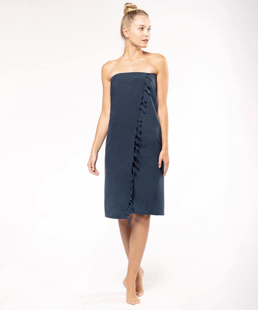 100% cotton. Dimensions 165 cm x 90 cm. Washed effect. Twisted and knotted fringes. This product has been specially treated and appears intentionally aged. This manufacturing process results in colour variations between products and makes each piece unique. Certified STANDARD 100 by OEKO-TEX®N° CQ1007/6, IFTH.