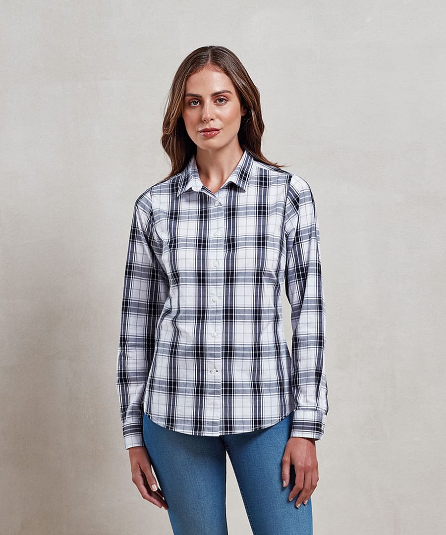 A women’s long sleeve semi-fitted shirt with attractive check pattern. Single button cuff and sleeve guard which is designed to be rolled up and secured in place with a button and tab on the upper arm. Soft collar styling with curved hem. WRAP certified. BSCI certified. Reach certified. SEDEX certified.